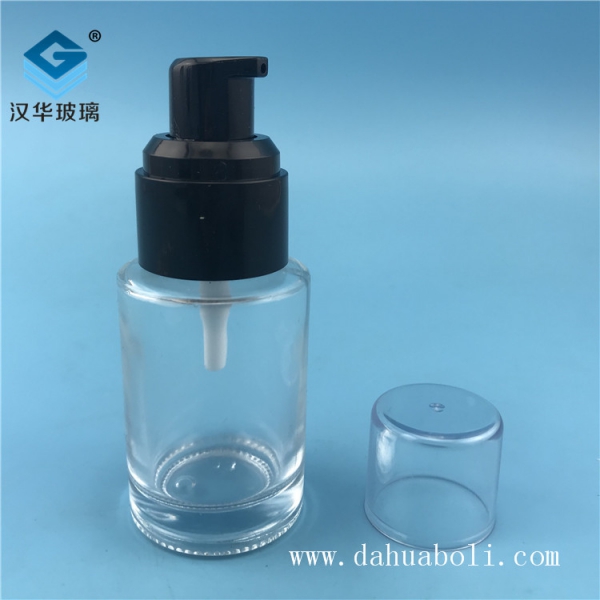 30ml塑料黑蓋透明玻璃乳液瓶