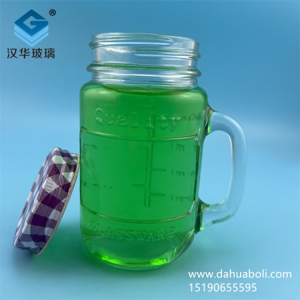 500ml帶把出口梅森玻璃杯
