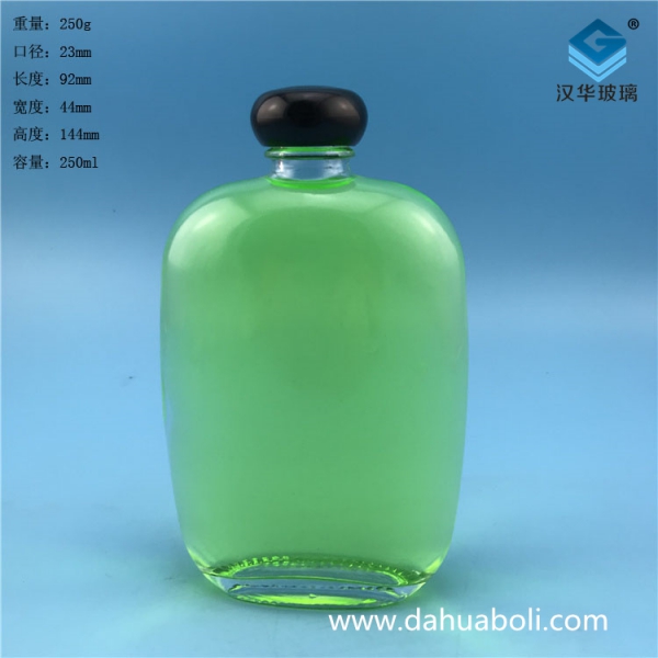 250ml透明玻璃扁酒瓶